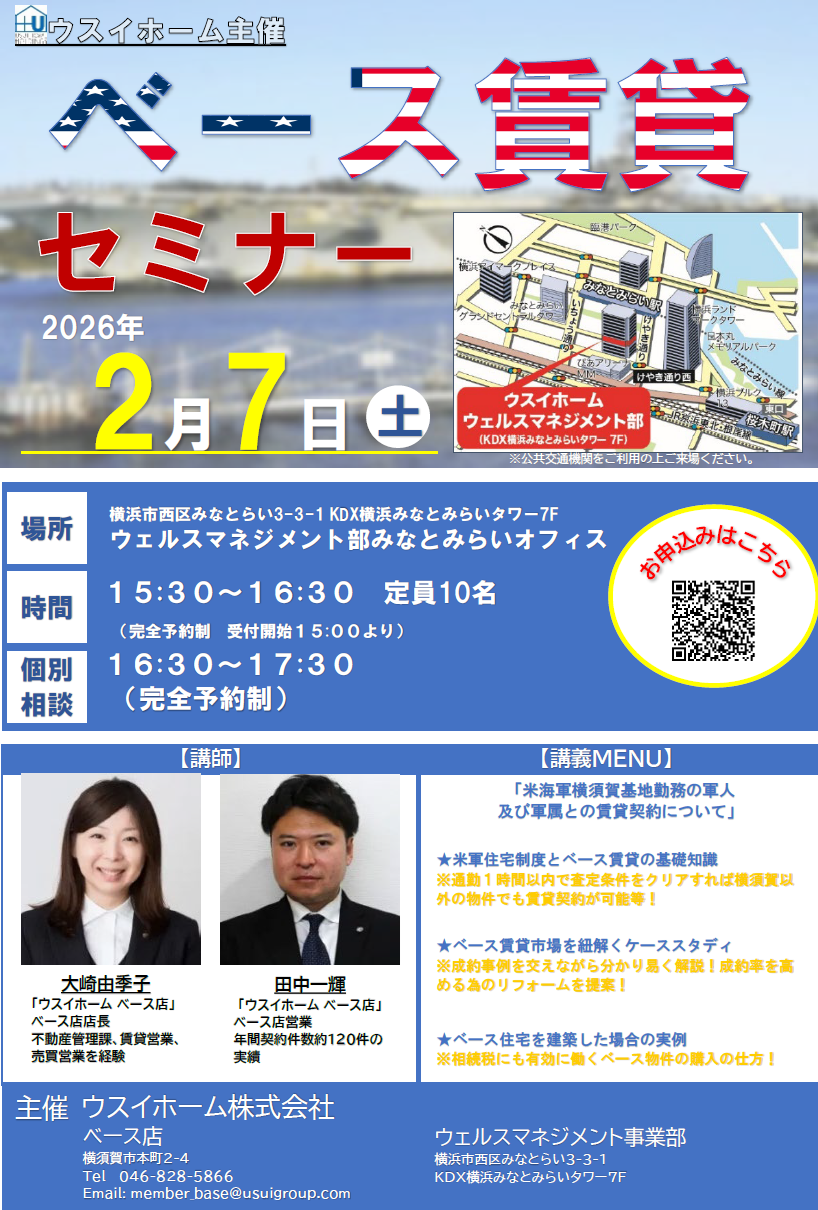 ウスイホームでは、2026年2月7日㈯に「ベース賃貸セミナー」を開催いたします。